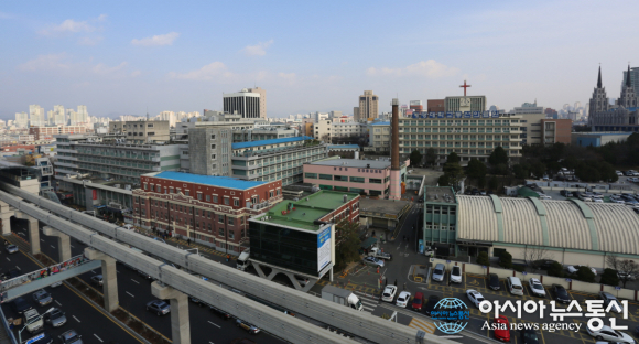 | 달구벌대로에서 바라본 계명대학교 동산병원(오른쪽은 계명대학교 성서캠퍼스).(사진제공=계명대 동산의료원) |