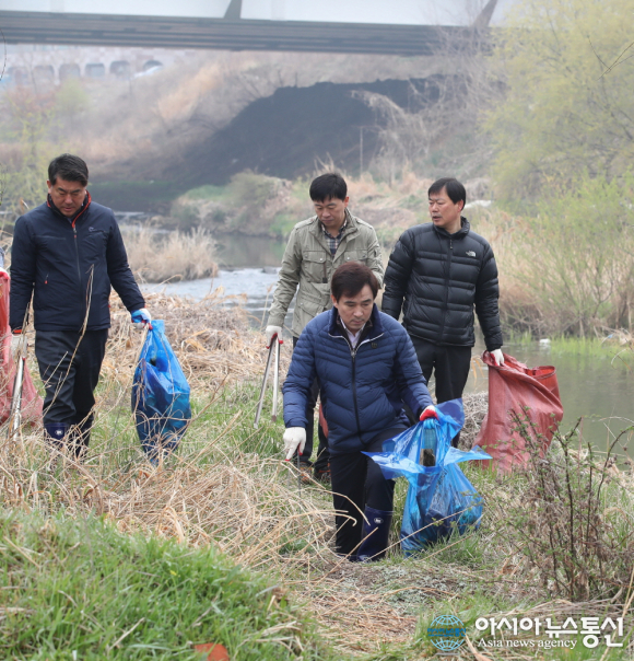경기 화성시가 11일 '깨끗한 화성의 날'을 맞아 새봄맞이 대청소로 오산천 일대 환경정화에 나섰다.