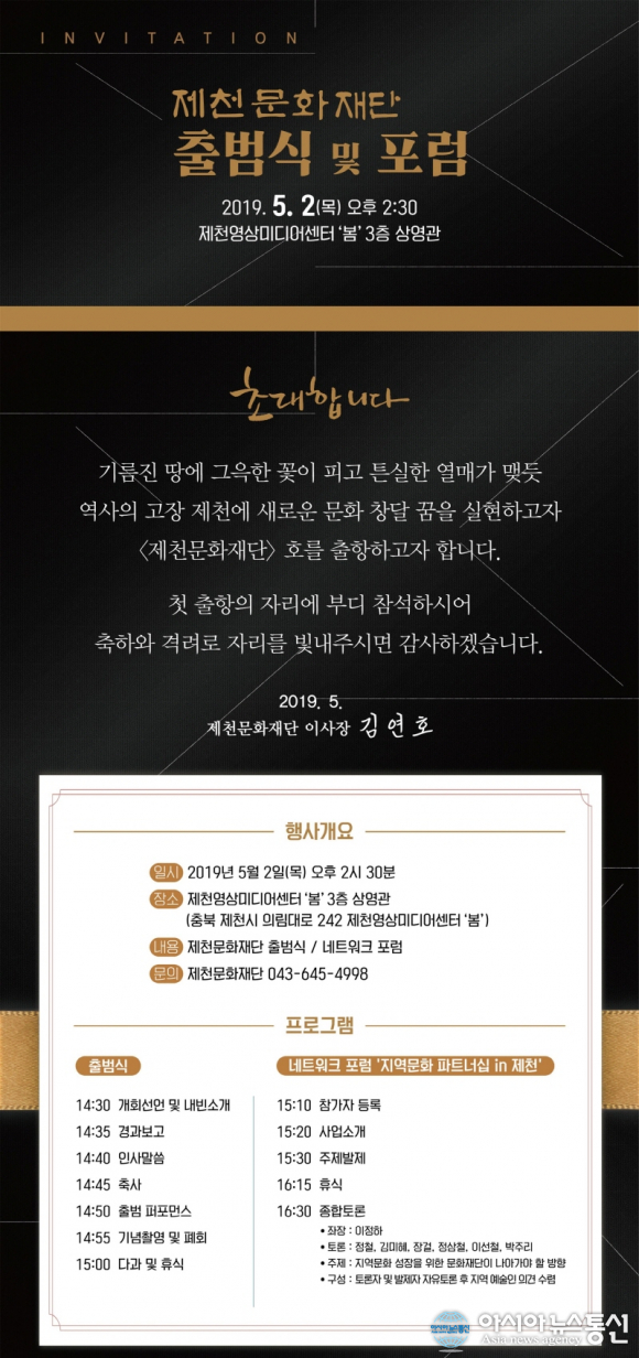 충북 제천문화재단 출범식 초대장.(사진제공=제천시청)