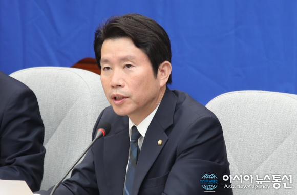 | 29일 서울 여의도 국회에서 열린 더불어민주당 확대간부회의에서 이인영 원내대표가 모두발언을 하고 있다./아시아뉴스통신=윤의일기자 |