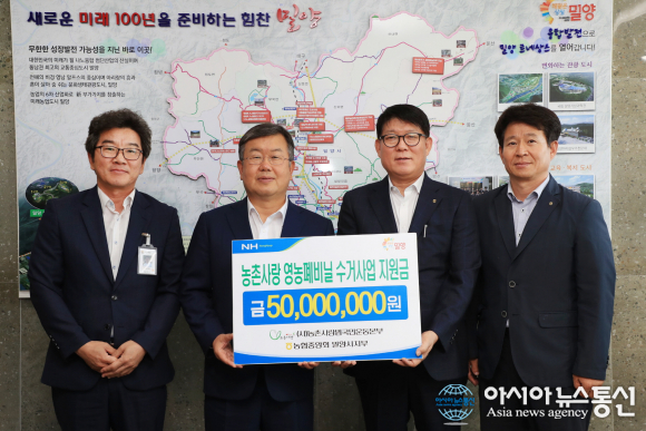 NH농협 밀양시지부와 (사)농촌사랑범국민운동본부는 24일 영농폐비닐 수거사업을 지원하기 위해 5000만원을 밀양시에 전달했다.