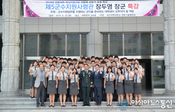 대구과학대학교(총장 박준) 국방기술행정과는 25일 대학본부 계단식 강의실에서 학생 진로설계 및 안보의식 함양을 위해 제5군수지원사령부 사령관 장두영 장군을 초청해 특강을 실시했다.