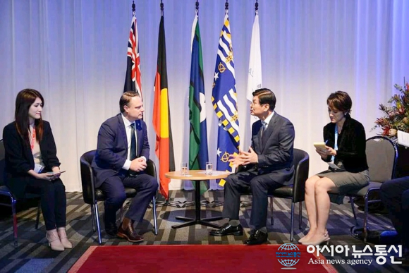| 이춘희 세종시장이 슈리너 호주 브리즈번시장과 스마트시티 분야에 대해 환담을 나눴다.(사진=세종시청) |