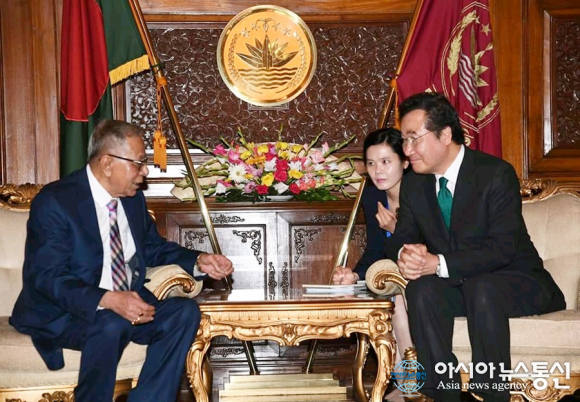 | 방글라데시를 공식방문한 이낙연 국무총리가 14일 압둘 하미드 대통령과 회담하고 있다.(사진=국무총리실) |