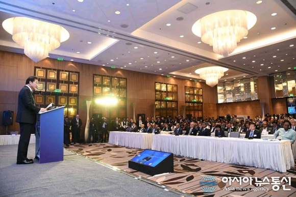 | 방글라데시를 공식방문하고 있는 이낙연 국무총리가 비즈니스 포럼에서 연설하고 있다.(사진=국무총리실) |