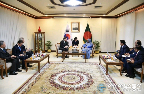 한편 이 총리는 이날 셰이크 하시나 총리 및 모하마드 압둘 하미드 대통령과 회담을 갖고 양국의 교류협력 지원 확대방안에 대해 의견을 나눴으며 하시나 총리가 주최한 만찬에 참석했다.