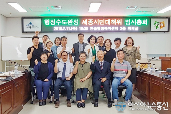 | 지난 11일 한솔동 주민센터에서 임시총회를 연 행정수도완성세종시민대책위.(사진제공=지방분권세종회의) |