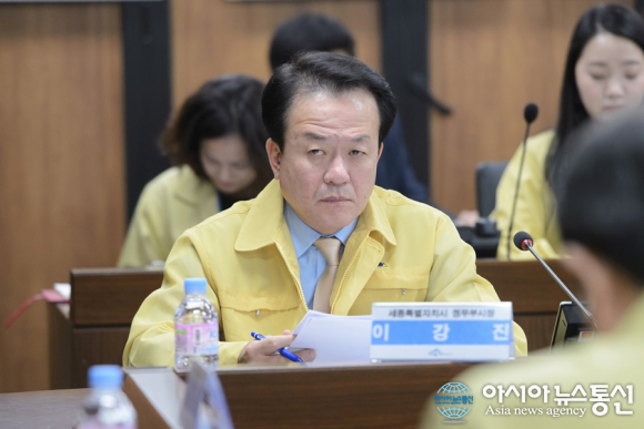 | 취임 1주년을 맞은 이강진 세종시 정무부시장이 지난 3월 미세먼지 회의에 참석한 모습.(사진=세종시) |