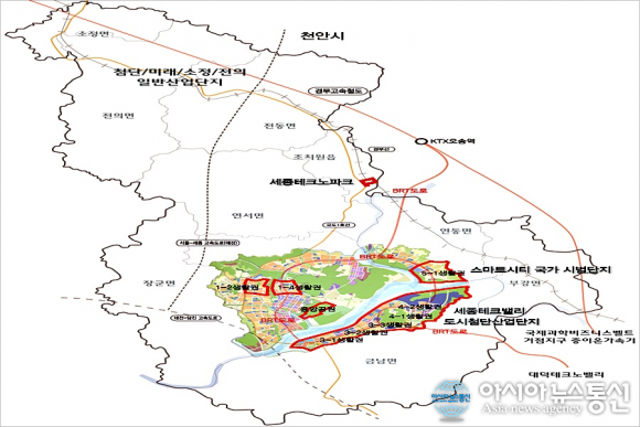 | 세종시가 25일 밝힌 규제자유특구 지정에 따른 자율주행실증 적용 대상지역 지도.(사진제공=세종시청) |