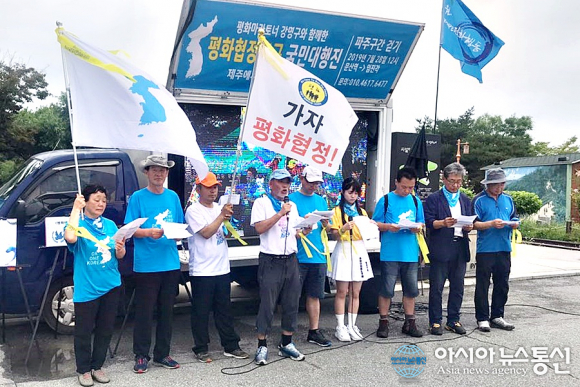 이날 평화협정촉구 국민대행진 조직위원회는 임진각 평화의 소녀상에서 보고대회를 갖고 "우리는 66년 묵은 정전협정을 평화협정으로 바꾸라며 제주에서 출발해 오늘까지 바람같이 달렸다"고 밝혔다.