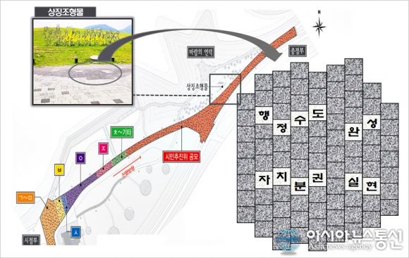 시는 매년 바닥돌을 추가해 최종적으로 전국 17개 시도를 상징하는 의미에서 1만 7000개의 바닥돌을 설치할 계획이며 상징조형물 인근에는 시정 목표인 ‘행정수도 완성, 자치분권 실현’ 문구와 역대 균형발전 정책의 성과를 둘러볼 수 있는 공간을 마련할 방침이다.