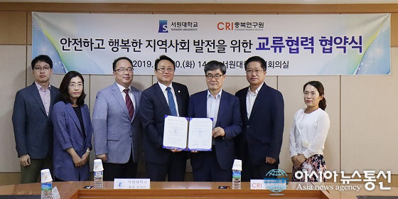 서원대학교(총장 손석민)는 본교 행정관 대회의실에서 충북연구원(원장 정초시)과 지역사회 안전과 복지증진을 위한 업무협약식을 가졌다고 21일 밝혔다.