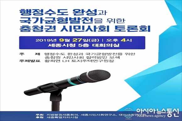 | 세종시청 대회의실에서 열리는 행정수도 완성 충청권 시민사회 토론회 포스터.(사진=지방분권세종회의) |