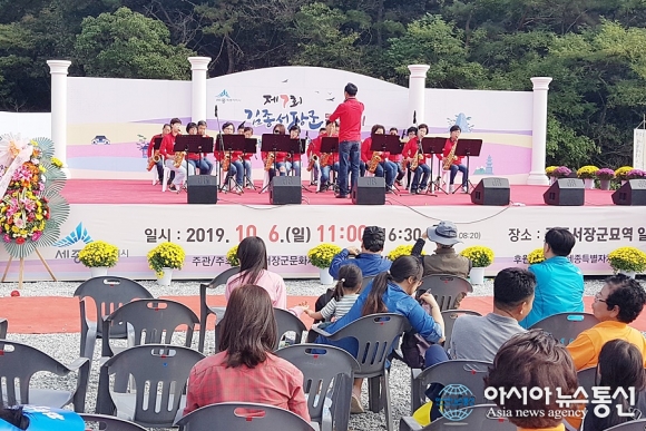 | [아시아뉴스통신=홍근진 기자] 세종시 장군면이 6일 세종축제를 맞아 세종대왕 시절 6진 개척의 업적을 남긴 김종서 장군을 기리는 제7회 김종서 장군 문화제를 장군의 묘역 일원에서 개최한 가운데 섹스폰 동아리의 공연이 펼쳐지고 있다. |