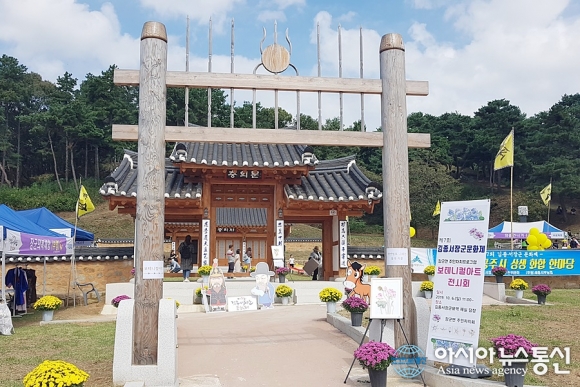| [아시아뉴스통신=홍근진 기자] 세종시 장군면이 6일 세종축제를 맞아 세종대왕 시절 6진 개척의 업적을 남긴 김종서 장군을 기리는 제7회 김종서 장군 문화제를 장군의 묘역 일원에서 개최한 가운데 묘역 앞에 새로 건립된 충의문 모습. |