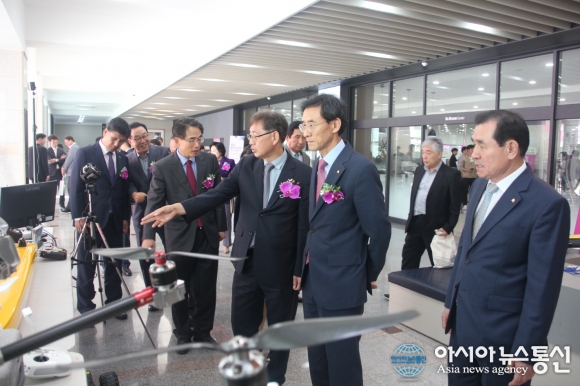 아울러 심포지엄과 함께 두드림센터 및 노벨과장에서 열린 '공간정보 산학협력 한마당'에서는 ▶일자리 창출Zone ▶Open 소통Zone ▶첨단 측량장비 전시Zone ▶드론 시연Zone 등에 지역의 공간정보분야 산업체, 공무원, 학생 등 500여명이 참가해 남북경협시대를 맞는 공간정보분야의 미래를 응원했다.