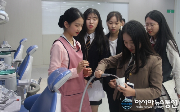 | 대구과학대학교에서 진행된 2020학년도 수시1차 모집 면접에서 치위생과 재학생이 면접 응시생들에게 학과 실습기자재에 대해 설명하고 있다.(사진제공=대구과학대) |