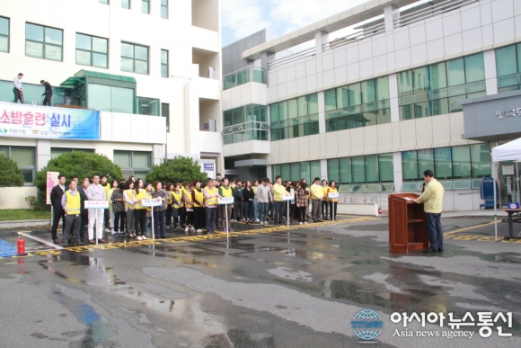 또한 화재 시 응급환자구출과 자위소방대원의 소화기와 옥내소화전을 이용해, 화재초기진압 훈련 등 상황별 대처 능력배양에 중점을 두고 일사불란하게 진행됐다.