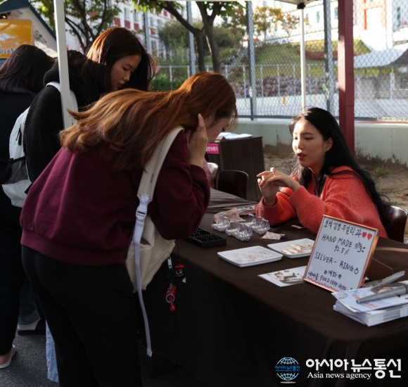 | 대구과학대학교에서 지난 24~25일까지 개최된 '제59회 한별축제'에서 보석감정주얼리과 학생들이 직접 제작한 장신구들을 전시하고 있다.(사진제공=대구과학대학교) |