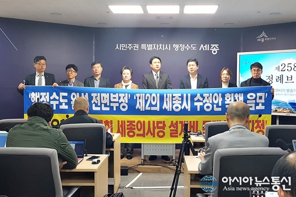 또 지방분권세종회의는 31일 시청에서 기자회견을 갖고 자유한국당의 국회 세종의사당 설계비 10억원에 대한 문제사업 지정은 '제2의 세종시 수정안 획책 음모'라고 강하게 비판했다.