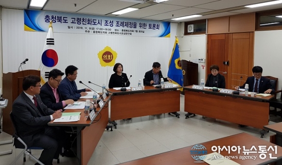 | 8일 충북도의회 의원연구모임인 충북고령친화도시조성연구회는 도의회 7층 회의실에서‘충북 고령친화도시 조성 조례제정을 위한 토론회’를 했다.(사진제공=충북도의회) |