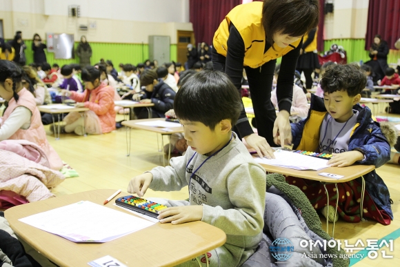 | '2019년 유아수놀이 주산암산 경기대회'가 7일 오전 대전 서구 '복수초등학교'에서 '(사)수·과학창의와융합(이사장 현승수)' 주최, '도서출판 반디교육'이 주관하고, 대전광역시 공공형어린이집연합회(회장 강태현)와 '해피키즈교육(대표 김은주)'의 후원으로 열린 가운데, 비비창의어린이집 송시우군(7세)이 주산을 놓고 있다./아시아뉴스통신=이현식 기자 |