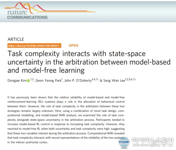 [아시아뉴스통신=이기종 기자] 한국과학기술원(KAIST)은 바이오및뇌공학과 이상완 교수 연구팀이 신경과학과 인공지능의 융합연구를 통해 인간의 문제해결 과정에서 뇌가 정보를 처리하는 원리를 규명하는 데 성공했다고 23일 밝혔다.