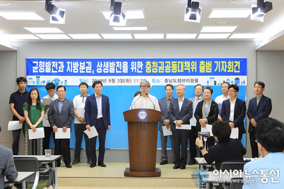 | 국가균형발전 등 충청권공동대책위원회가 지난해 9월 출범 기자회견을 갖고 있다./아시아뉴스통신DB |