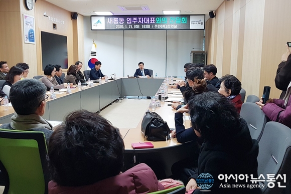 | 세종시 새롬동 복합커뮤니티센터 회의실에서 열린 입주자대표 간담회에서 손인수 세종시의원은 주민들의 의견을 수렴해 시의회에서 논의를 거쳐 결정하겠다고 밝혔다./아시아뉴스통신=홍근진 기자 |