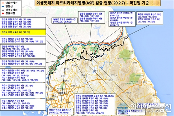 연천군은 야생멧돼지 아프리카돼지열병 표준행동지침에 따라 시료를 채취하고 현장소독과 함께 사체를 매몰했다.