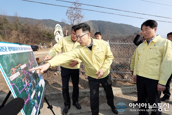 [아시아뉴스통신=홍근진 기자] 아프리카돼지열병 중앙사고수습본부(본부장 김현수 농림축산식품부 장관, 이하 중수본)는 최근 강원도 화천군 광역울타리 밖에서 아프리카돼지열병(ASF)에 감염된 야생멧돼지가 발견됨에 따라 14일 현장을 찾아 광역울타리 설치 상황을 점검하고 관계부처 및 지자체와 방역 대책을 논의했다.