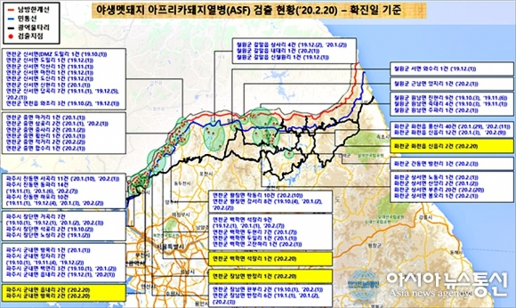 이로써 파주시 64건, 연천군 70건, 화천군 81건의 멧돼지 아프리카돼지열병이 확진됐으며, 전체 237건이 됐다.
