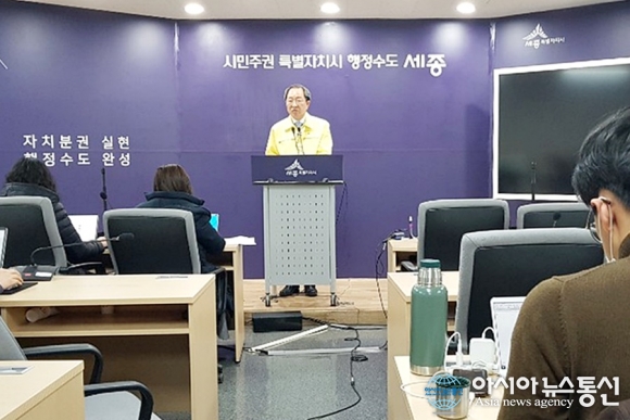 | 세종시가 24일 '심각' 단계로 격상함에 따른 조치상황을 브리핑하고 있다./아시아뉴스통신=홍근진 기자 |