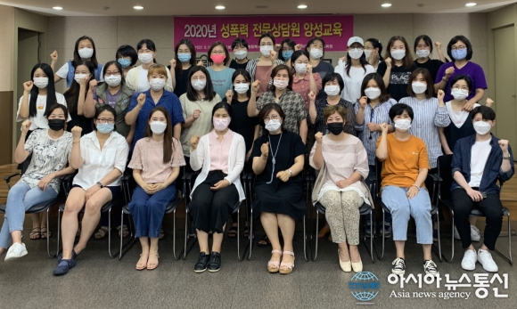 대구과학대 국제세미나실에서 지난 1일 개최된 '2020년 성폭력 전문상담원 양성교육 과정' 수료식에서 교육생들이 단체 기념촬영을 하고 있다.(사진제공=대구과학대)