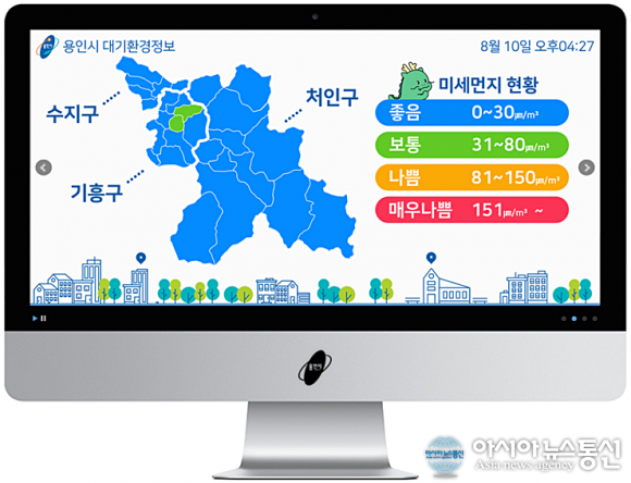 경기 용인시는 24일 관공서나 어린이집 등에서만 볼 수 있었던 미세먼지 안내 전광판을 시민 누구나 이용할 수 있도록 ‘우리동네 미세먼지 오픈 API(Application Program Interface) 만들기 서비스’를 제공한다고 밝혔다.
