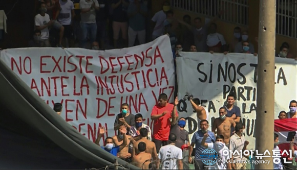 | Inmates of Lima's Castro Castro prison protested following a deadly riot amid growing fears over the spread of the coronavirus. (Photo by=The Nation Thailand/AFP) |