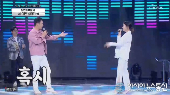 [아시아뉴스통신=이상진 기자] '사랑의 콜센타'에서 가수 장민호, 솔지가 '밤이면 밤마다'를 열창했다.