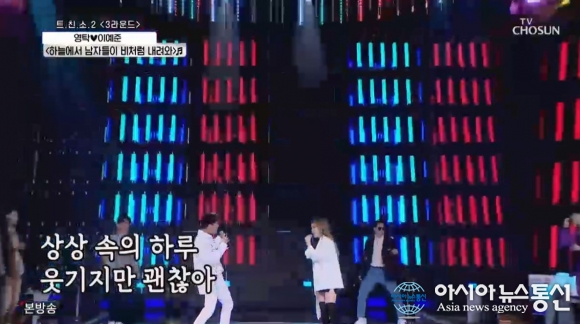 두 사람은 뛰어난 가창력은 물론 완벽한 호흡을 자랑하며 '하늘에서 남자들이 비처럼 내려와' 무대를 선보여 눈길을 끌었다.