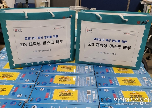 아울러 김해시는 지역 내 24개 고등학교 고3 수험생 전 학급에 KF94 마스크 5300매를 전달하고, 17개 각 고사장마다 코로나 상황을 이겨내고 그간의 노력이 빛을 발하길 바라는 허성곤 시장의 격려 메시지를 담은 현수막을 달아 수험생들을 격려하고 있다.