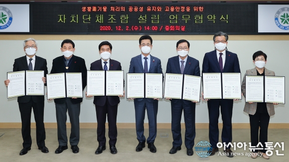 [아시아뉴스통신=정예준 기자] 대전시와 5개 자치구 그리고 대전도시공사는 2일 ‘생활폐기물 처리 공공성 유지와 고용안정을 위한 자치단체조합 설립 업무협약’을 체결했다.