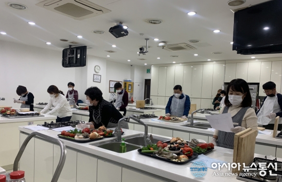 대구과학대 식품영양조리학부에서 개최한 '2020년 경북도 공무원 중견간부양성과정 홈베이킹 자격증 프로그램'에서 공무원들이 직접 음식요리를 하고 있다./아시아뉴스통신 DB