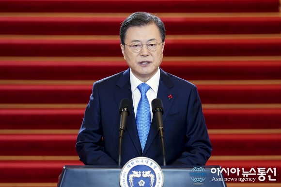 | 11일 문재인 대통령이 청와대 본관에서 2021년 신축년 신년사를 발표하고 있다.(사진제공=청와대) |
