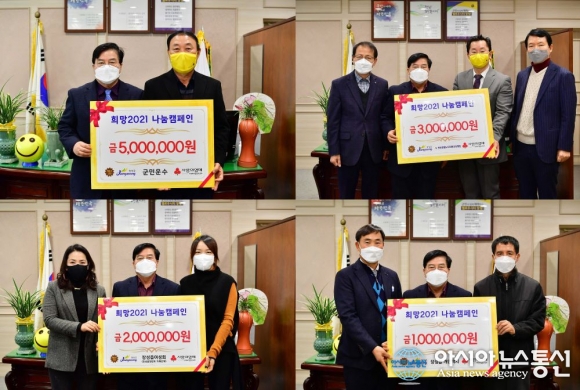 [아시아뉴스통신=양도월 기자] 전남 장성군이 새해 벽두부터 ‘희망2021 나눔캠페인’ 기탁이 이어지고 있다고 전했다.