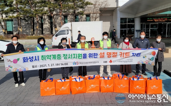 [아시아뉴스통신=한기만 기자] 화성시지역사회협의체가 민족 대명절인 설을 앞두고 27일 시청에서 취약계층을 위한 설 명절 키트 전달식을 가졌다.