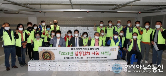 [아시아뉴스통신=한기만 기자] 경기 화성시지역사회보장협의체가 5월 가정의 달을 맞아 10일 화산동행정복지센터에서 열무김치 나눔행사를 가졌다.