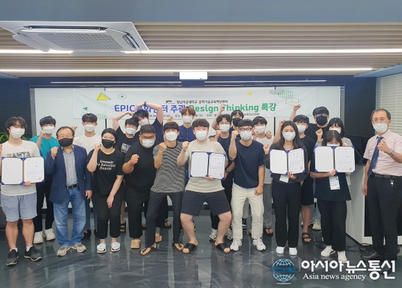 | 영남이공대학교 공학기술교육혁신센터 주관으로 지난달 30~31일 양일간 진행된 '디자인 씽킹' 특강 참석자들이 기념사진을 촬영하고 있다.(사진제공=영남이공대학교) |
