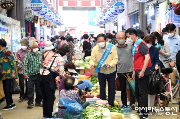 이번 방문은 고유의 명절인 추석을 앞두고 코로나19 장기화로 힘든 시기를 보내고 있는 상인들의 애로사항을 청취하고, 방역상황 점검을 통해 안전한 명절보내기의 일환으로 마련됐다.