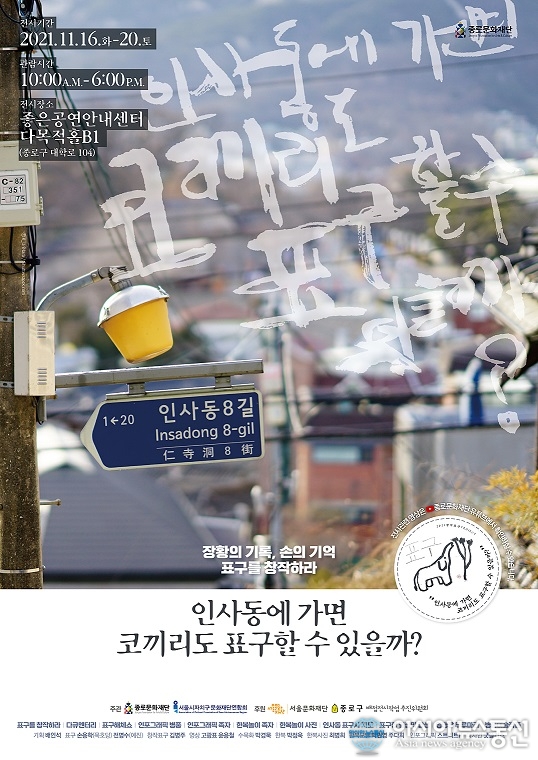 [아시아뉴스통신=서승희 기자] 종로구는 11월 16일(화)부터 20일(토)까지 마로니에공원 다목적홀에서 표구의 역사와 의미를 재조명하는 「표구를 창작하라 “인사동에 가면 코끼리도 표구할 수 있을까?”」 전시회를 개최한다.