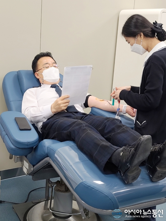 [아시아뉴스통신=김경선 기자] 서승우 충북도 행정부지사는 지난 8월에 이어 23일 헌혈의집 성안길센터를 찾아 코로나19 및 동절기 여파에 따른 혈액 수급난에 대응하기 위한 ‘사랑의 헌혈’에 동참했다.