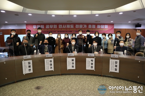 [아시아뉴스통신=최근내 기자] 한국노총 공무원연맹 산하 전국우체국노조(위원장 주정호)는 지난 22일 서울중앙우체국 국제회의실에서 우정직 인사차별에 대한 전문가 초청 좌담회를 열고, 현장의 목소리를 청취했다고 밝혔다.